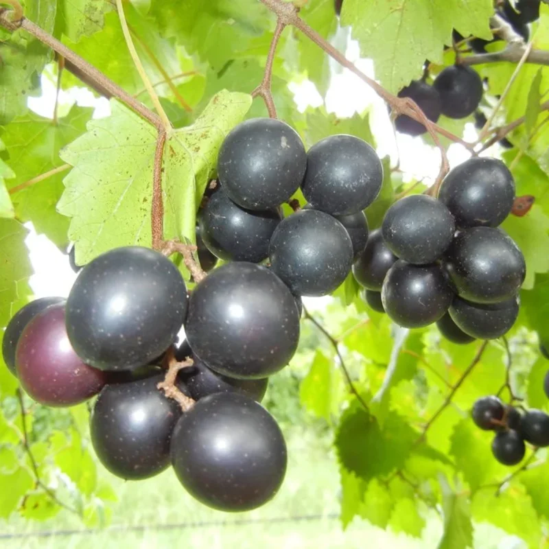 To ensure optimal growth, the Muscadine requires full sun, needing at least 6-8 hours of sunlight daily. The plant is adaptable to various soil types, thriving best in slightly acidic to neutral, well-drained sandy or loamy soils. Regular moderate watering and annual pruning in winter will keep your vine healthy and productive.