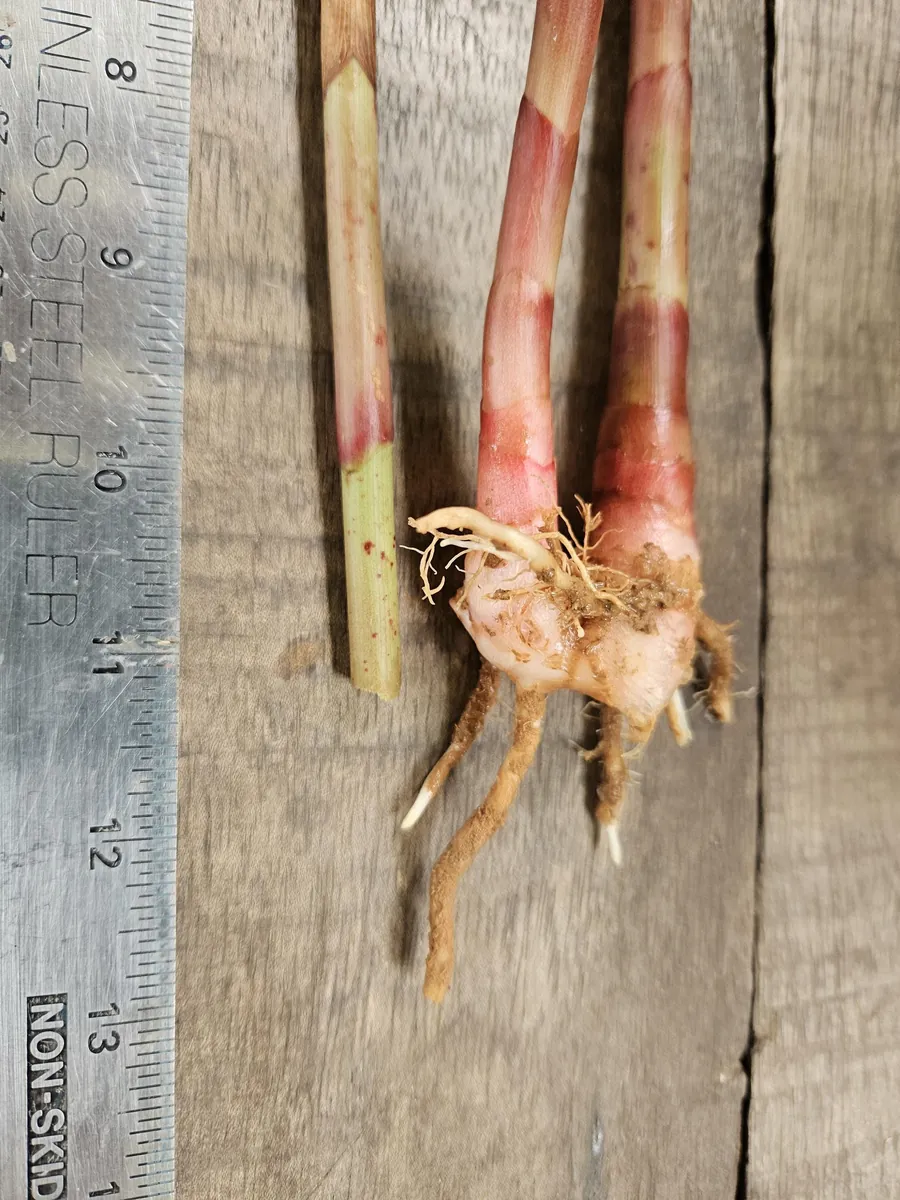 Each order includes 2 Hawaiian Red Ginger rhizomes, ready for planting. These rhizomes are typically harvested fresh, ensuring maximum vitality for sprouting. Upon arrival, they will be dormant but will quickly begin to sprout when provided with the right conditions. The rhizomes are approximately 10 inches in length, providing a substantial base for healthy growth. When mature, the Alpinia Purpurata plant can reach heights of 6 to 10 feet in ideal outdoor conditions, forming clumps that are 3 to 5 feet wide. When grown in containers, their size can be managed through pot size and pruning, usually staying between 3 to 6 feet tall.