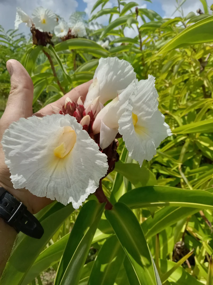 • Stunning Ornamental Value: The upright, spiraling stems and large, green leaves of the Malay Ginger rhizomes create a dramatic visual impact. Its unique cone-shaped flowers, often white or pink with yellow centers, provide vibrant pops of color in late summer to fall, making it a beautiful focal point.