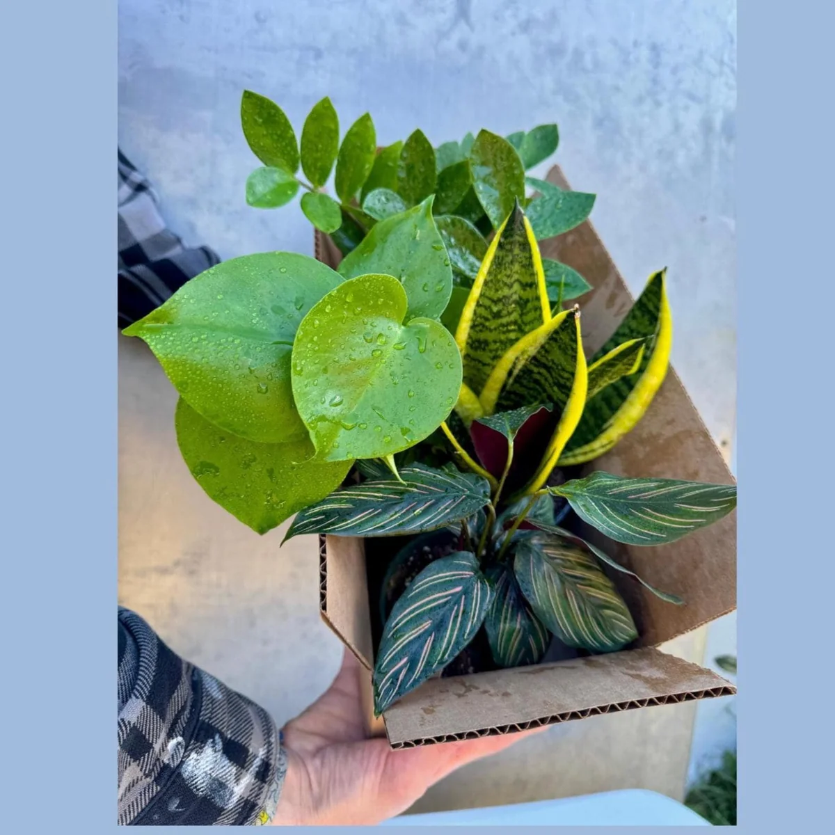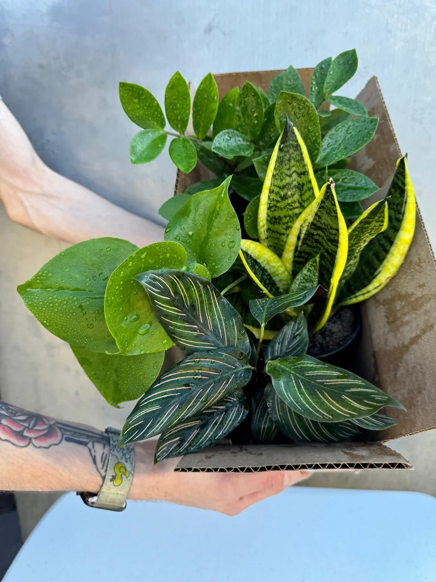Unbox a delightful surprise with this 4 live indoor house plant bundle. Receive a mystery houseplant set of four unique, healthy, and easy-care houseplants, each in a 4 inch potted plants. Perfect for brightening any space or as a thoughtful gift.