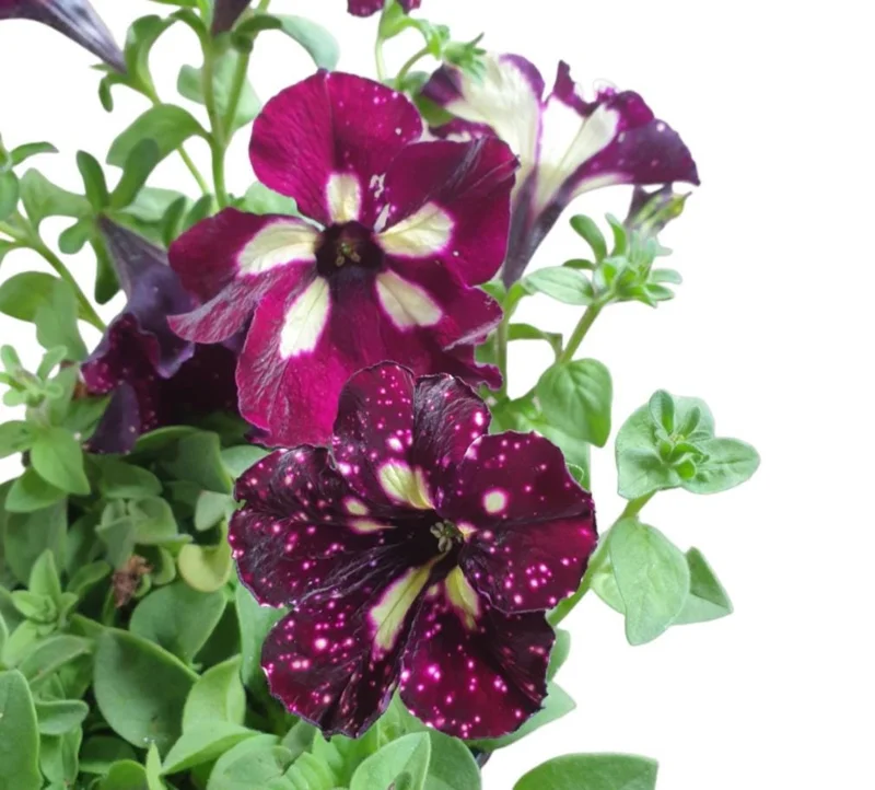 Caring for your Starry Sky Petunia live plant is straightforward, ensuring a season full of beautiful blooms. These petunias thrive in full sun, requiring at least 6 hours of direct sunlight daily to produce the most vibrant and abundant flowers. In extremely hot climates, some afternoon shade can be beneficial to prevent scorching, but generally, more sun equals more blooms. For optimal growth, plant them in well-draining soil. While they are adaptable, a rich, fertile soil will encourage stronger plants and more prolific flowering. These plants are excellent for creating stunning displays, and their unique burgundy petunia care requirements are quite manageable.