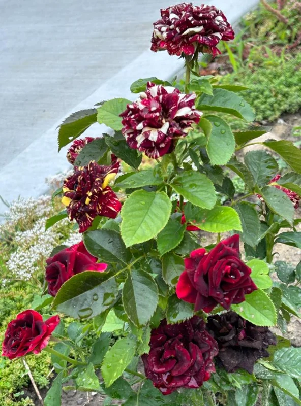 - Q: Does the flower color vary? A: Yes, the standout feature of this rose is its marbled blooms, with deep reds and creamy yellows blending together in a dramatic striped pattern that means no two flowers are exactly alike, making each bloom a surprise.