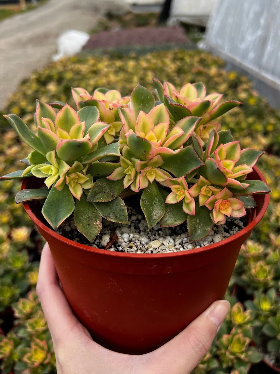 • Q: What condition will it arrive in? A: Your colorful succulent will arrive as a live plant, securely packaged, typically in its original nursery pot with soil. We take great care to ensure it reaches you in excellent condition, ready to be introduced to its new home.