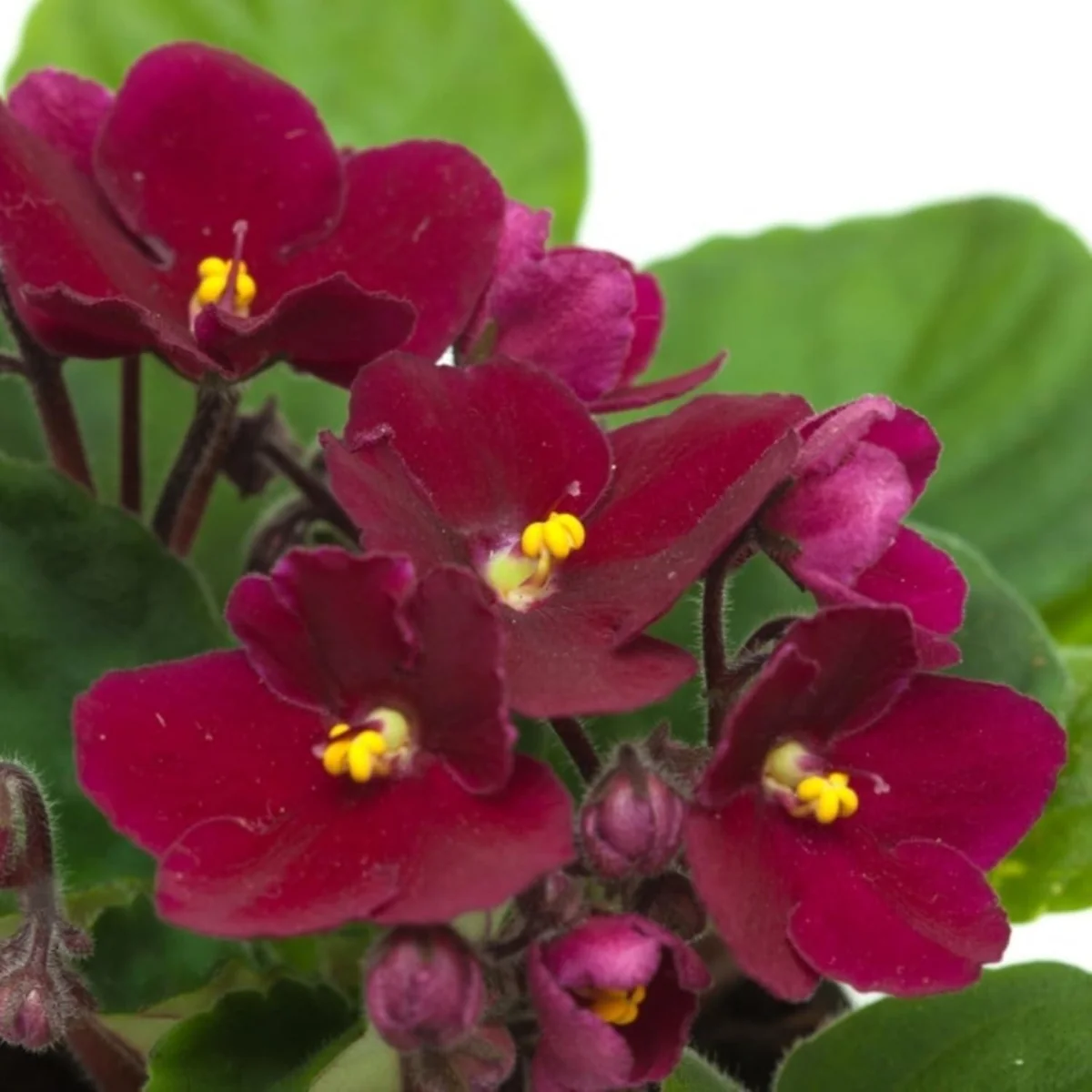 - Q: Is the burgundy red color true to the image? A: Yes, the burgundy african violet is known for its rich, deep red blooms, which are accurately represented. Slight variations may occur due to natural plant differences and screen settings.