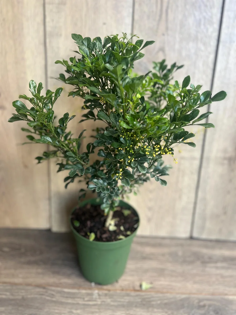 The tiny, yellow, rice-grain-shaped flowers are borne in panicles that are approximately 2 to 4 inches (5-10 cm) long. These flowers are the source of the plant’s characteristic sweet and lemony fragrance. While the plant may not be blooming upon arrival, with proper Chinese Perfume Tree care, you can expect it to produce its fragrant blossoms during its natural blooming season. This plant ships as a live, potted specimen, ensuring minimal transplant shock and a strong start in its new home. Ensure you have adequate space and the right environmental conditions for this delightful rice flower plant to thrive and reach its full potential.