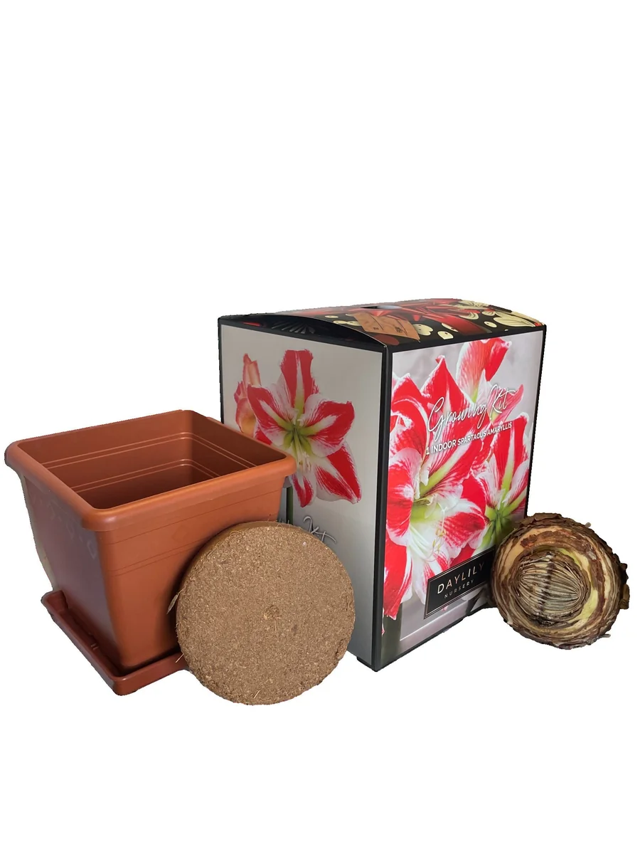 Amaryllis Kit Spartacus – Red & White Indoor Flower Bulb – 20-24 Inches Tall