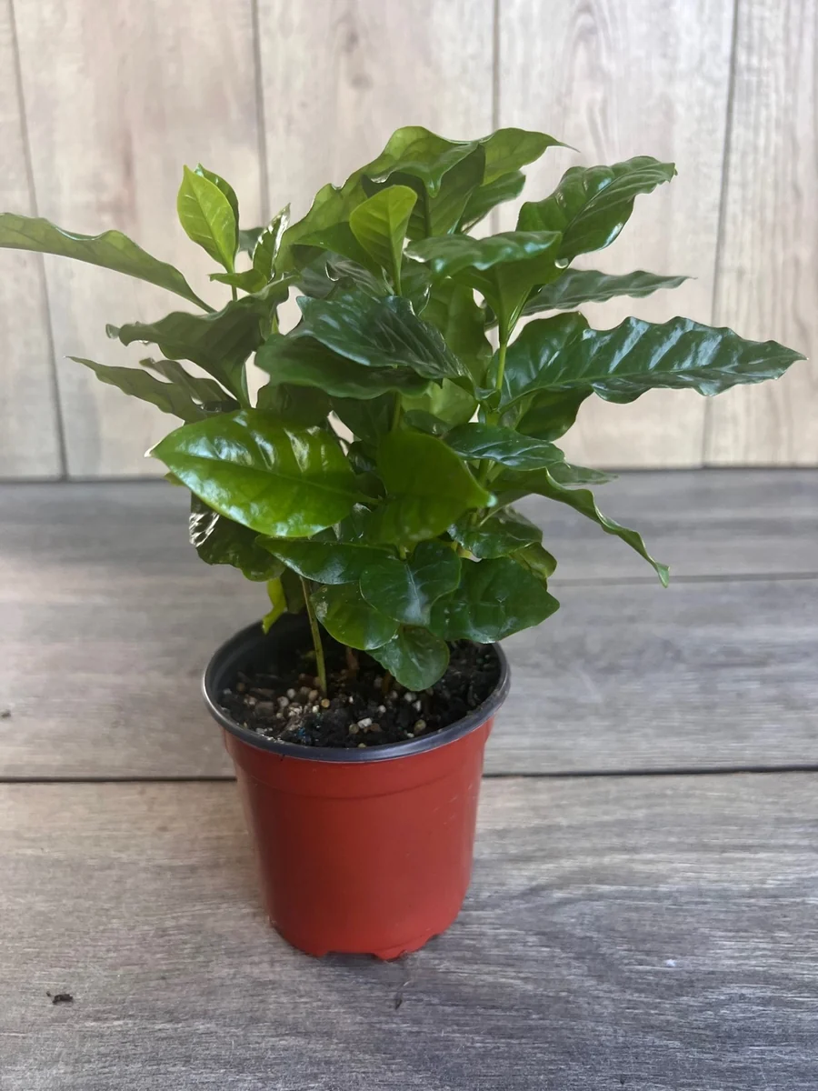 - Q: How big does this plant get? A: Your Arabica Coffee Plant typically arrives 6-10 inches tall in a 4-inch pot. Indoors, it can eventually grow 2-4 feet tall with pruning, and potentially taller over many years if allowed.
