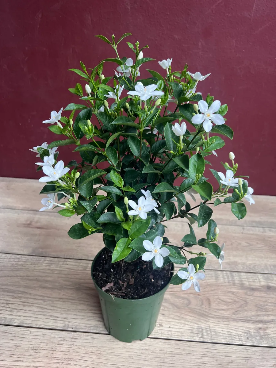 - Q: What size pot does it come in? A: This fragrant jasmine shrub is delivered in a 6-inch nursery pot, providing ample space for its initial growth and establishment. You can transplant it to a larger container or directly into your garden.