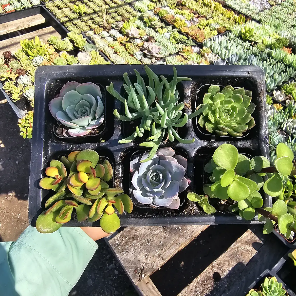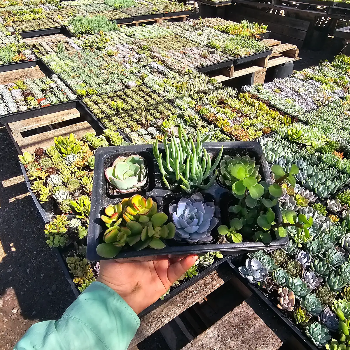 - Q: What types of succulents are included in the assorted succulent sampler? A: The assorted succulent sampler includes a diverse mix of six different succulent varieties. The exact species will vary depending on seasonal availability but are always chosen for their health and beauty, offering a wide range of colors and forms.