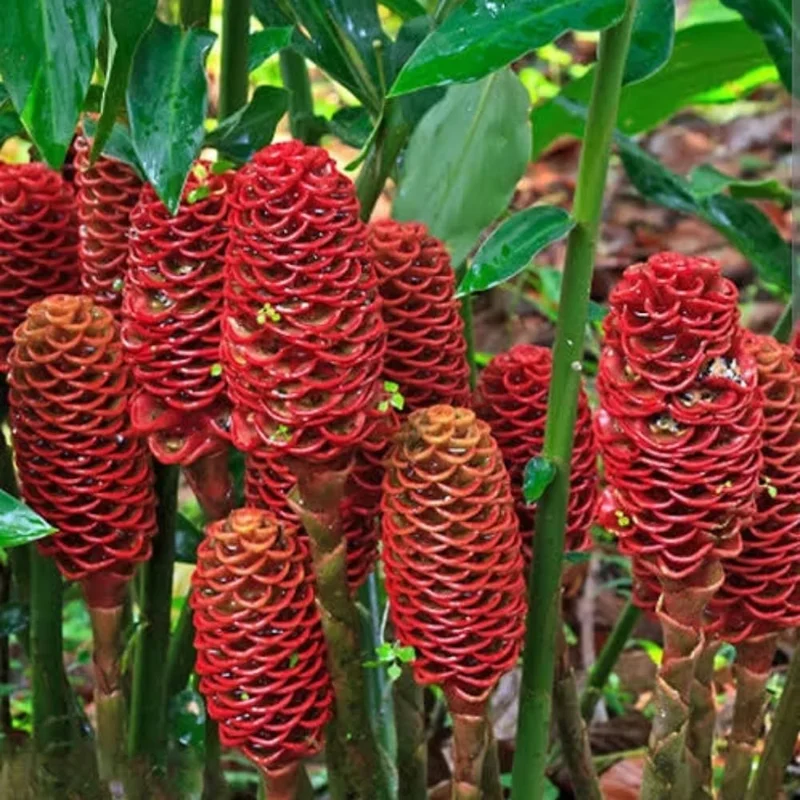 • Exotic Tropical Appeal: With its tall, leafy stalks and distinctive red pinecone-like blooms, the Hawaiian ginger lily adds an undeniable tropical flair to any garden or landscape. It creates a lush, vibrant atmosphere that transports you to a warmer climate.