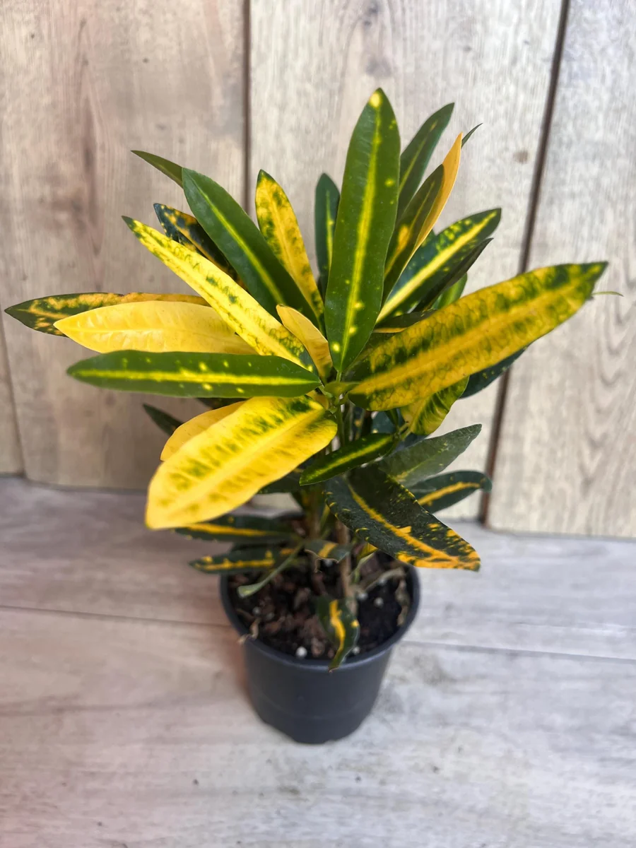 • Unique Foliage: The distinct ‘Banana’ leaf shape sets this croton variety apart, offering a unique textural element to your plant collection.