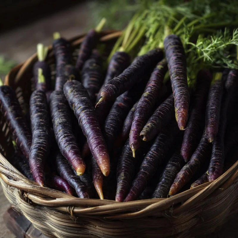 • Q: What are the health benefits of these purple carrots? A: Their deep purple color is due to high levels of anthocyanins, powerful antioxidants known for various health-promoting properties.