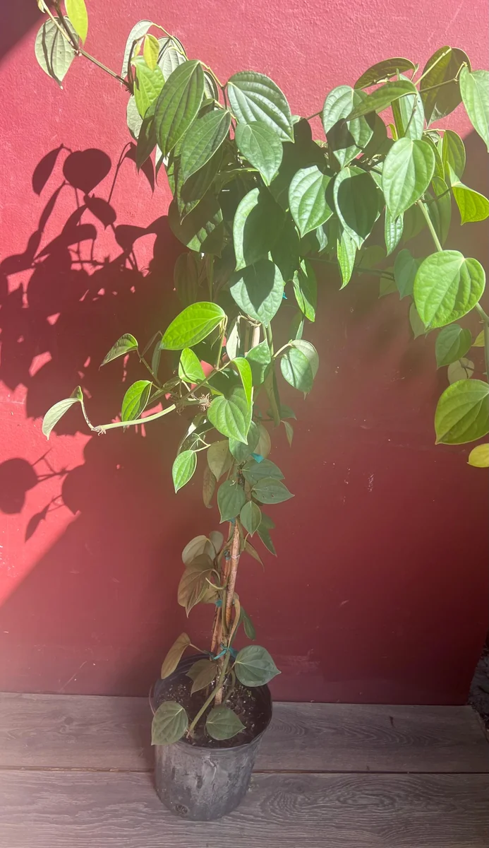 - Exotic Tropical Foliage: With its handsome, glossy heart-shaped leaves, the Piper nigrum plant adds a lush, tropical ambiance to any space. It’s an attractive vine that can enhance your home decor or garden landscape.