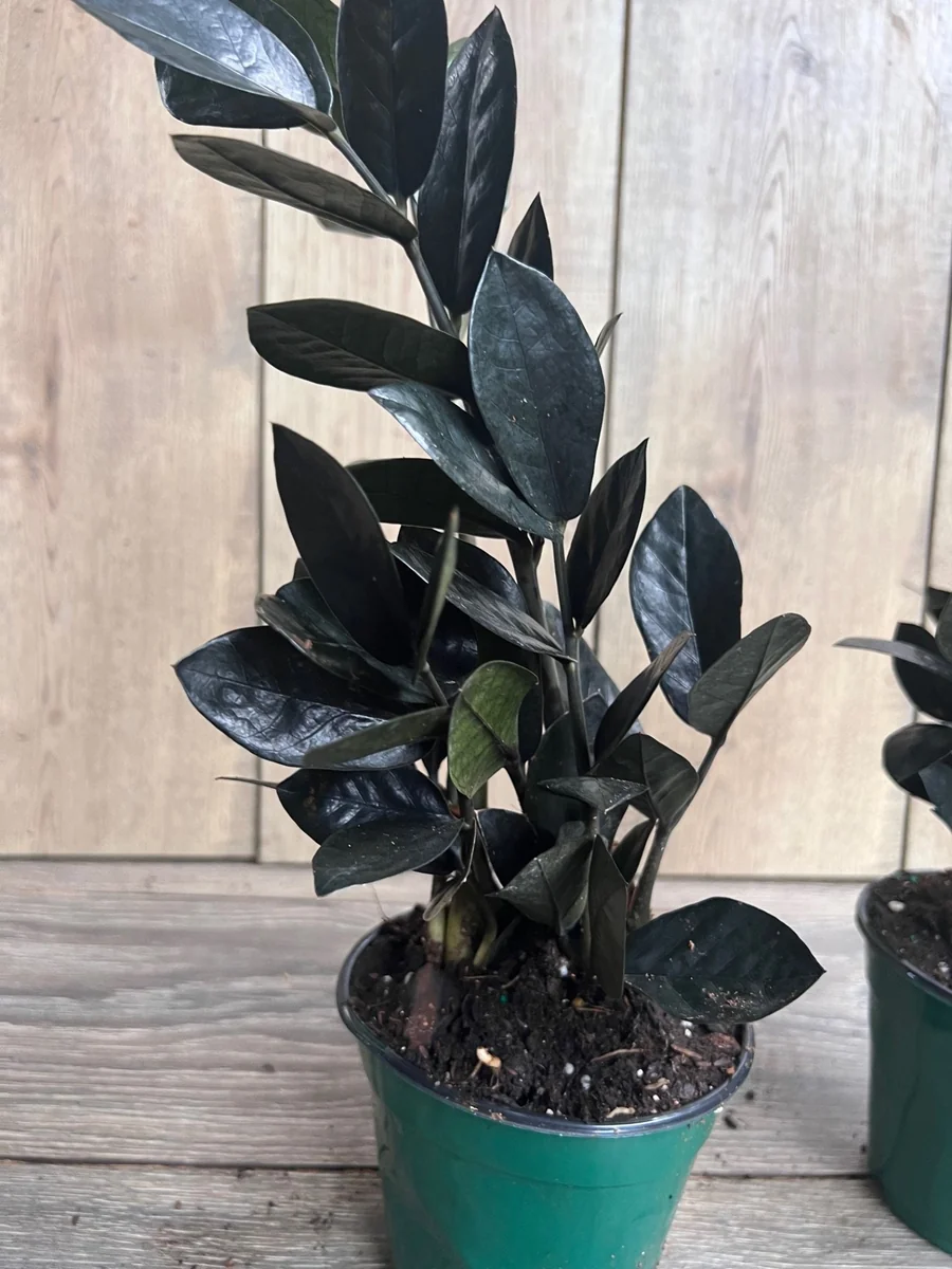 This listing is for a black raven zz plant, delivered in a 4-inch nursery pot. The plant you receive will be similar in size and appearance to the images provided, showcasing its distinctive dark foliage. This zamioculcas zamiifolia raven is a young, healthy specimen ready to thrive in its new home. Expect a mature height of 2-5 feet indoors, though growth is slow. It arrives as a potted plant, established in its soil, ensuring a smooth transition. The 4-inch pot size makes it an ideal starter plant, perfect for placement on desks, shelves, or as part of a larger plant arrangement. Its resilience and slow growth mean you won’t need to repot frequently, making dark zz plant care even simpler.