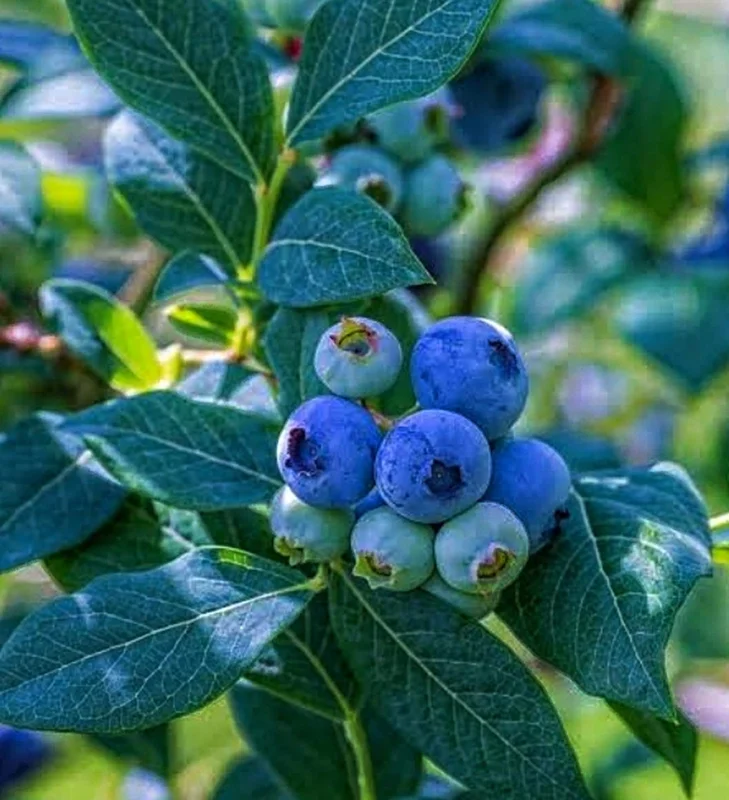 Sunlight: Blueberry plants require at least 6-8 hours of direct sunlight per day to produce a good harvest. Choose a location in your garden or patio that receives full sun. In hotter climates, some afternoon shade can be beneficial to prevent scorching. Watering: Blueberries need consistent moisture, especially during fruit development. Water deeply and regularly, ensuring the soil remains evenly moist but not waterlogged. Use rainwater or distilled water if your tap water is alkaline. Mulching with pine needles, wood chips, or shredded leaves helps retain moisture, suppress weeds, and maintain soil acidity. Fertilization: Fertilize your fruit bearing shrub in early spring with an acid-forming fertilizer formulated for blueberries or other acid-loving plants like azaleas and rhododendrons. Avoid fertilizers containing nitrates, which can be harmful to blueberries. Follow package instructions for application rates.