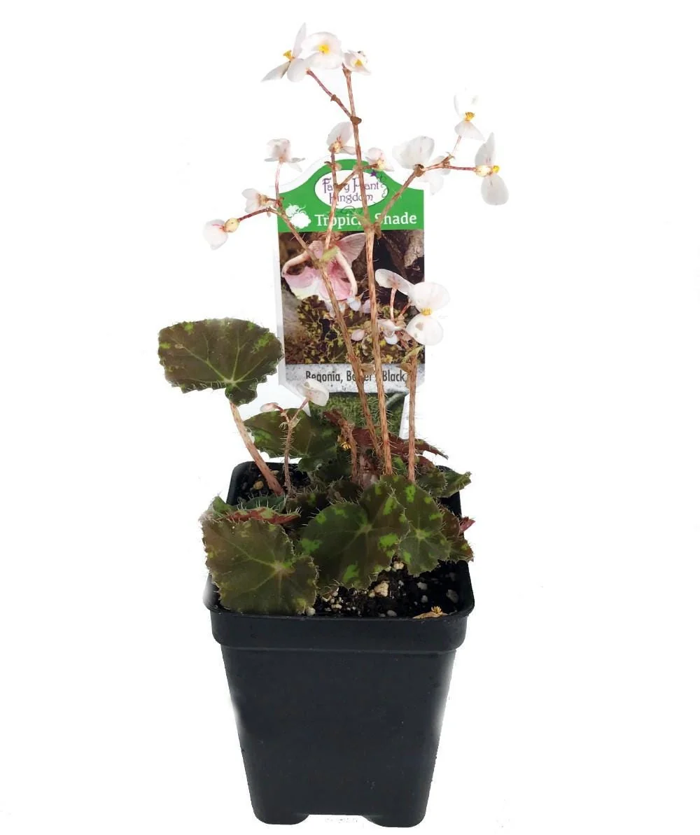 - Q: What condition will it arrive in? A: Your Bower’s Black Begonia live plant will arrive carefully packaged in its 2.5-inch nursery pot, with soil, and will be a healthy, actively growing specimen ready for its new home.