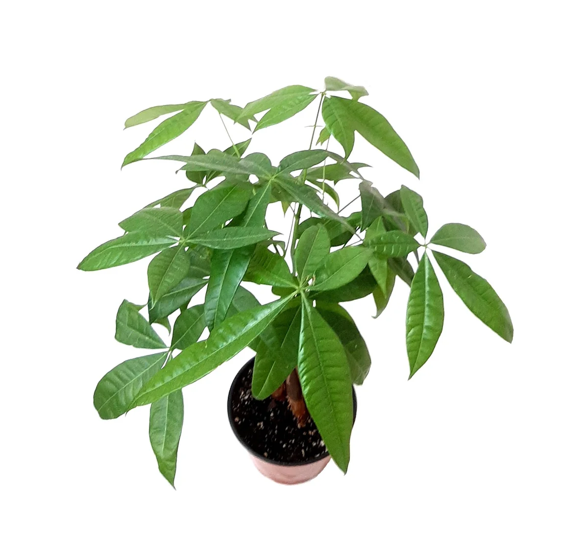 Watering is crucial for healthy braided money tree care. This plant prefers consistent moisture but is highly susceptible to root rot if overwatered. Allow the top inch or two of the soil to dry out completely before watering again. When you do water, do so thoroughly until water drains from the bottom of the pot. Ensure the pot has drainage holes to prevent waterlogging. Money trees appreciate humidity, so misting the leaves every few days or placing the pot on a pebble tray with water can help maintain healthy foliage. For soil, a rich, well-draining potting mix is essential. While they grow in swamps in their native habitat, a potted money tree needs soil that drains effectively to prevent its roots from sitting in standing water. Feed your money tree live plant once a month during the growing season (spring and summer) with a balanced liquid houseplant fertilizer diluted to half the recommended strength. No feeding is needed during the dormant winter months.