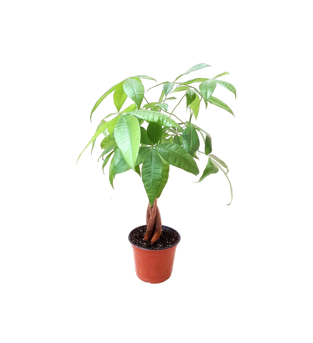 The braided trunk design is a key feature, adding significant aesthetic value and making each plant unique. This indoor fortune plant is known for its moderate growth rate, and with proper braided money tree care, it will continue to develop a fuller canopy and stronger trunk structure over time. While it is primarily grown as an indoor houseplant, its mature size can eventually reach several feet tall in ideal conditions, though it can be pruned to maintain a desired size. The lush, palmate leaves create a vibrant green presence, contributing to its overall appeal as a decorative and symbolic addition to any indoor environment.