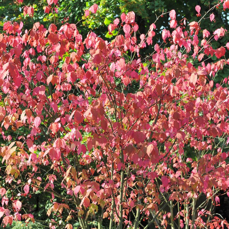 Burning Bush Trees (Euonymus alatus) are renowned for their vibrant fall foliage that turns an almost neon-red hue, making them a stunning addition to any landscape. These woody shrubs typically reach a height of 10-15 feet, but they can be pruned to maintain a smaller size, fitting various garden designs. Ideal for both shady areas and spots with full or partial sun, Burning Bush Trees thrive in well-draining soil.