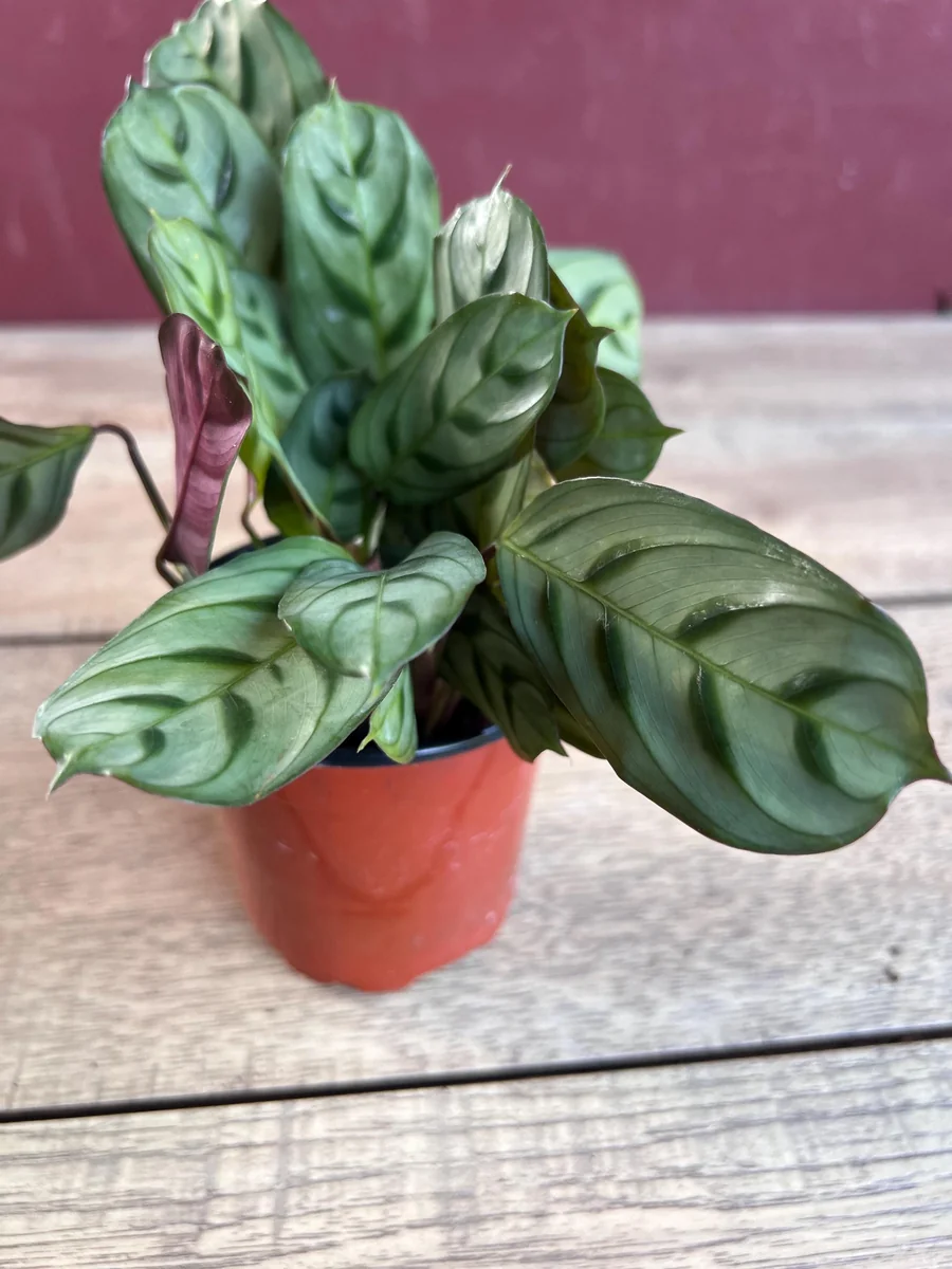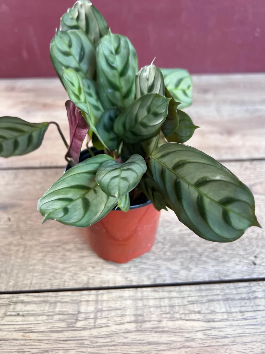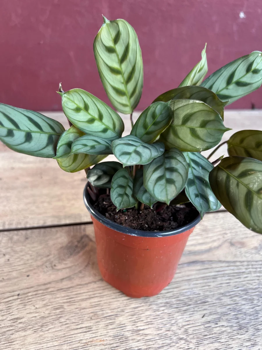 The distinctive V-shaped stripes and red-violet undersides of the leaves are present even in young plants, offering immediate visual appeal. While exact dimensions can vary slightly based on individual plant growth, you can expect a healthy, compact specimen that will grow steadily with consistent fishbone prayer plant care. The 4-inch pot is a suitable starting size, and you may consider repotting into a slightly larger container (e.g., a 6-inch pot) after about 6-12 months, or when you notice roots emerging from the drainage holes. This ensures continued healthy growth for your Ctenanthe Burle-Marxii indoor plant.