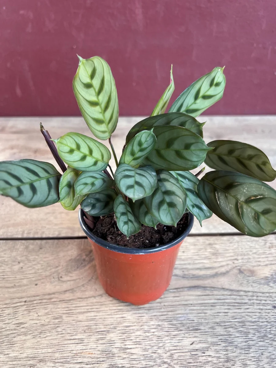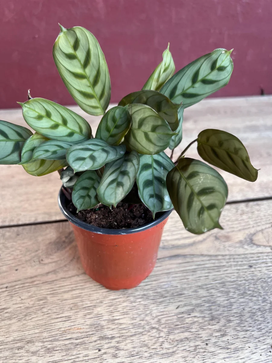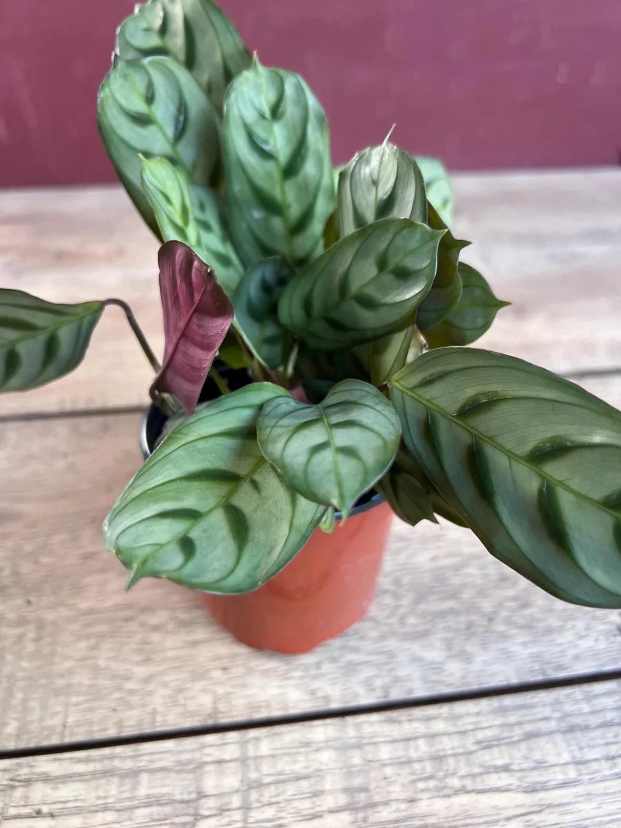 The distinctive V-shaped stripes and red-violet undersides of the leaves are present even in young plants, offering immediate visual appeal. While exact dimensions can vary slightly based on individual plant growth, you can expect a healthy, compact specimen that will grow steadily with consistent fishbone prayer plant care. The 4-inch pot is a suitable starting size, and you may consider repotting into a slightly larger container (e.g., a 6-inch pot) after about 6-12 months, or when you notice roots emerging from the drainage holes. This ensures continued healthy growth for your Ctenanthe Burle-Marxii indoor plant.