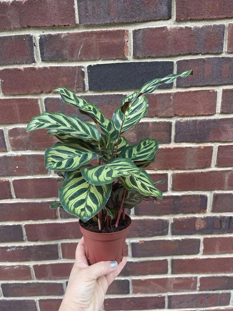 Bring home a beautiful Calathea Makoyana live plant, also known as the Peacock Plant care, in a 4 inch Grow pot. This stunning indoor houseplant features vibrant, intricate leaves that resemble peacock feathers and acts as a natural air purifier houseplant. It’s an easy care Calathea, perfect for adding a touch of tropical elegance to your home.