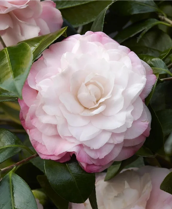 Introduce an unparalleled touch of elegance to your landscape with the magnificent Camellia japonica Nuccio’s Pearl live plant. This highly sought-after evergreen shrub is celebrated for its spectacular, formal double flowers that captivate with their pristine white centers delicately edged with a soft orchid pink blush. A true masterpiece of nature, ‘Nuccio’s Pearl’ offers a sophisticated floral display, typically blooming from late winter to early spring, providing much-needed color when most other plants are dormant. As a robust and long-lived specimen, this Camellia grows into a dense, upright shrub, making it an excellent choice for foundation plantings, borders, or as a stunning focal point in a garden bed. Its glossy, dark green foliage provides year-round visual interest, ensuring your garden remains vibrant even when not in bloom. This particular specimen is a healthy, established plant, measuring approximately 2 feet tall and shipped in a 1-gallon pot, ready to thrive in its new home. The Camellia japonica Nuccio’s Pearl is a classic choice for gardeners seeking beauty, resilience, and a touch of refinement.
