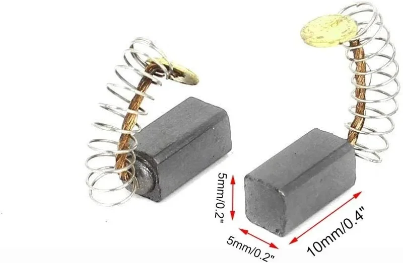 • Wide Compatibility: The standard 10x5x5mm carbon brushes size ensures compatibility with a broad array of popular power tool models and brands, making them a versatile spare part to have on hand. This dimension is common across many types of electric motors.