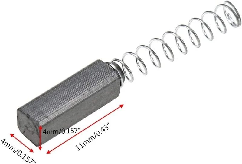 - Q: How big are these carbon motor brushes? A: Each carbon motor brush in this pair measures 11mm x 4mm x 4mm, making them a precise fit for compatible power tool rotors.