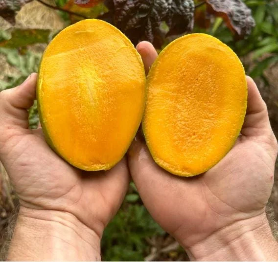 Exceptional Fruit Quality: The ‘Carrie’ mango is renowned for its superior taste, offering a rich, sweet, and aromatic flavor with smooth, fiberless flesh. This makes it a top choice among connoisseurs of the sweet mango variety.