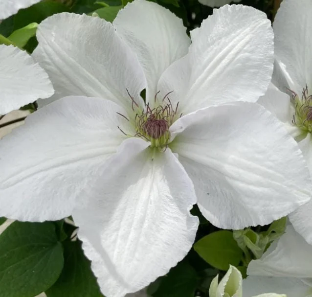 This perennial clematis plant offers a long season of interest, with its stunning flowers emerging to brighten your outdoor spaces. Its vigorous growth habit allows it to quickly establish and cover structures, providing dense foliage and a continuous display of its iconic white blossoms. The ‘Guernsey Flute’ is a robust and resilient variety, capable of thriving in a wide range of climates (see USDA zone details below). Its striking appearance and ease of care make it a highly sought-after plant for creating dramatic vertical accents in gardens, patios, and entryways. Whether you’re looking to add elegance to a boring wall or create a vibrant living screen, the Guernsey Flute Clematis is an outstanding choice that will reward you with years of glorious blooms.