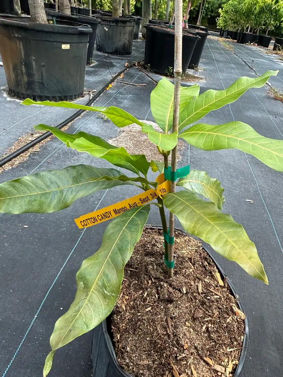 This offering is for a Cotton Candy Dwarf Mango tree, which arrives as a live plant in a 3 gallon pot. Each tree is professionally grafted and fully rooted, ensuring a strong start and true-to-type fruit production. The size of the mango trees can vary by season and the popularity of the variety, reflecting their natural growth cycles. Upon arrival, your mango tree will be established in its 3-gallon container, with a healthy root system ready for planting in its permanent location or a larger pot. These trees exhibit a moderately vigorous to very vigorous growth habit, developing into an attractive, open canopy with vertical branches.