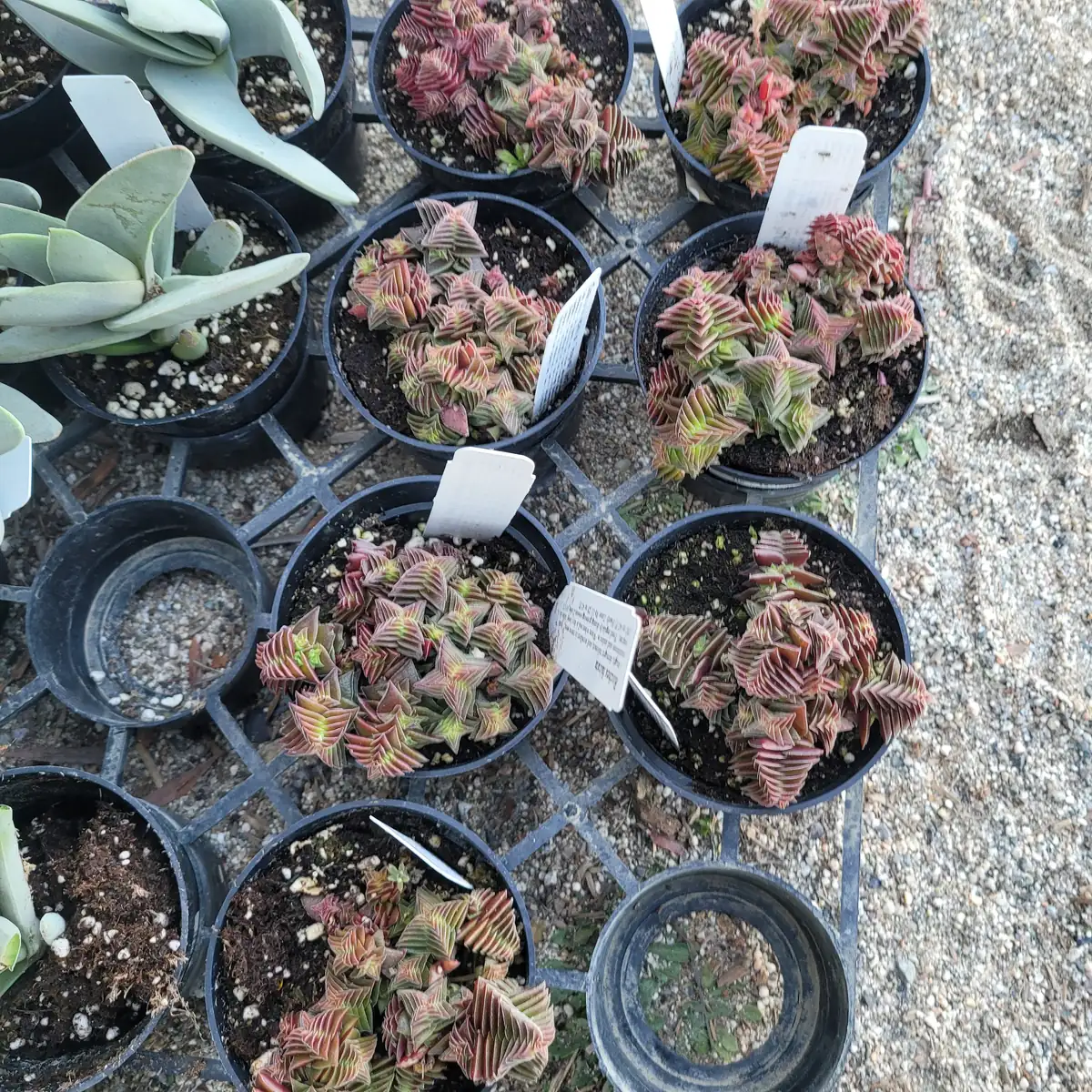 Our Crassula Capitella live plant is offered in various sizes to suit your gardening needs, typically available as a rooted cutting, or in a 2-inch or 4-inch nursery pot. The size of the plant you receive will vary slightly depending on the option chosen, but each plant is carefully selected to ensure health and vitality. A 2-inch potted plant is perfect for small arrangements or starting your collection, while a 4-inch pot offers a more established specimen. When mature, the Pagoda Village succulent typically grows to a height of 6 to 12 inches with a similar spread, forming dense, attractive clusters. Its growth rate is moderate, allowing you to enjoy its development over time. Expect to see the most vibrant red coloration during periods of strong sunlight and slightly cooler temperatures, enhancing the unique appeal of this Crassula Capitella live plant. This plant is shipped in its nursery pot or as a carefully prepared rooted cutting, ready for you to transplant into your preferred container or garden spot.