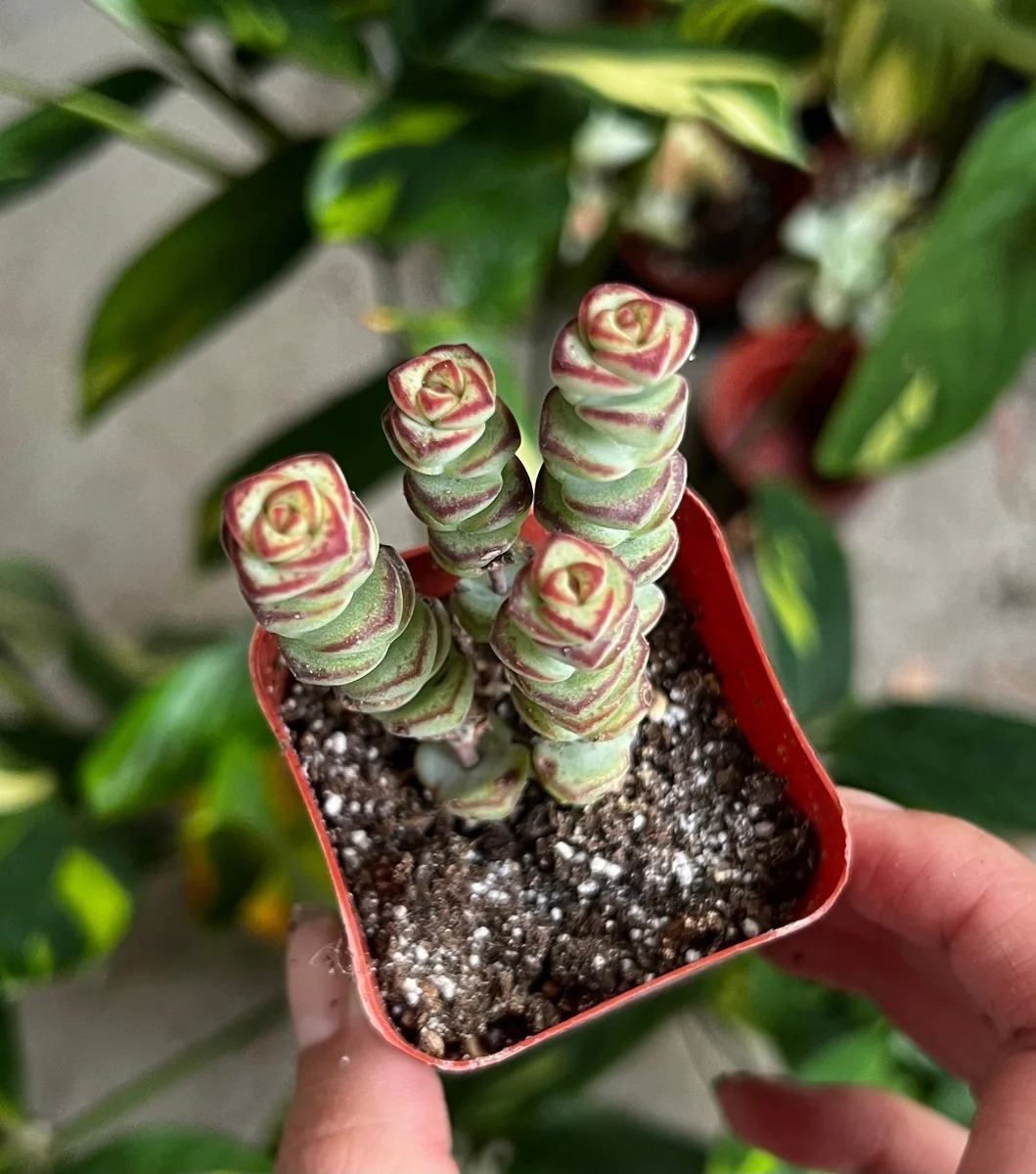 The right soil is crucial for the health of your Crassula Rupestris Baby Necklace. Use a well-draining potting mix specifically formulated for succulents and cacti. This type of soil prevents water logging and ensures good aeration for the roots. You can also mix perlite or coarse sand into regular potting mix to improve drainage. This plant prefers average room temperatures, ideally between 65-80°F (18-27°C). It is not frost-tolerant, so if you live in an area with cold winters, it’s best to keep it indoors or provide protection. Fertilization is generally not heavily required; a diluted, balanced liquid fertilizer can be applied once in spring and once in summer during its active growing season. Look out for common problems like mealybugs or spider mites, which can be treated with insecticidal soap. Ensuring good air circulation also helps prevent fungal issues. For those wondering about a small succulent plant that is easy to manage, this Crassula fits the bill perfectly with its minimal requirements.
