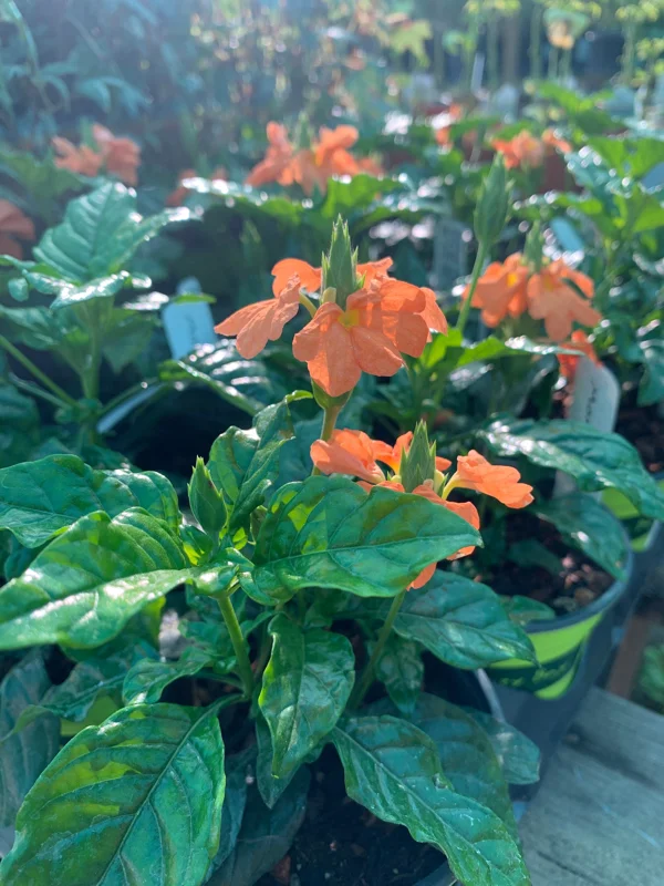 This plant is not just about its beauty; it’s also relatively easy to care for, thriving in warm, humid conditions. Whether you’re enhancing your patio, brightening a partially shaded garden bed, or adding a vibrant accent to your indoor plant collection, the Crossandra Infundibuliformis Orange live plant is a superb selection. Its compact growth habit makes it suitable for various spaces, from windowsills to hanging baskets. The vivid orange hues are perfect for creating a focal point or complementing other tropical plants. Discover the joy of growing this magnificent plant and enjoy its continuous display of cheerful blooms.