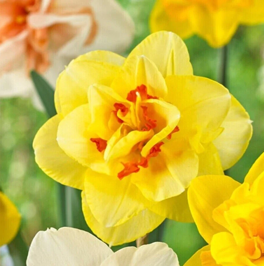 - Stunning Spring Display: Enjoy a spectacular show of color and form as these mixed daffodil varieties burst into bloom, creating an eye-catching focal point in any garden setting. The combination of trumpet and double forms adds visual interest and texture.