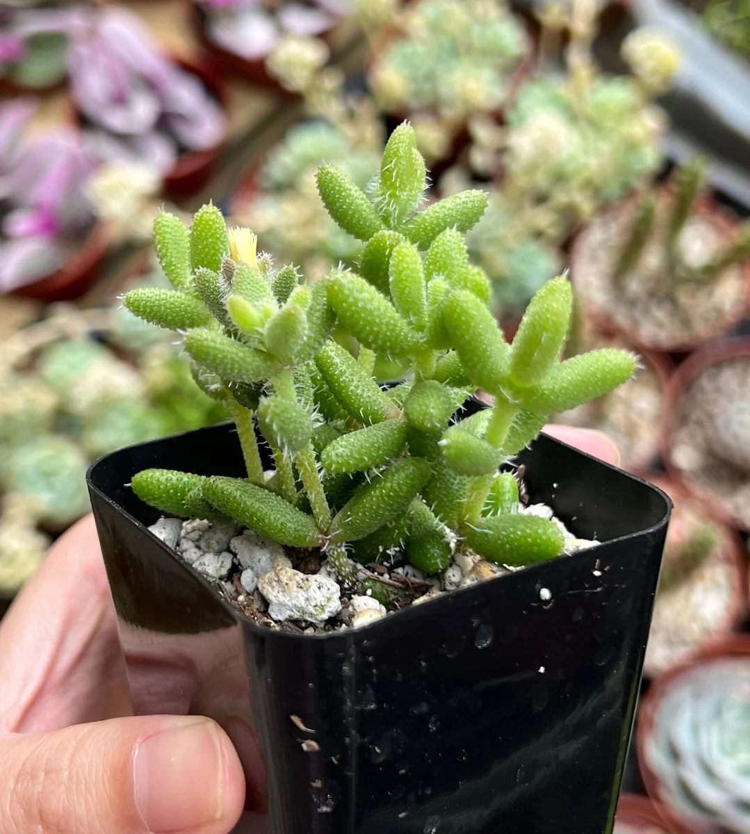 • Unique Ornamental Appeal: The primary benefit of the Pickle Ice Plant succulent is its distinctive appearance. Its cylindrical, spiky leaves resemble tiny pickles, providing an unusual texture and visual interest that stands out in any succulent collection, rock garden, or hanging basket. This makes it a fantastic conversation piece.