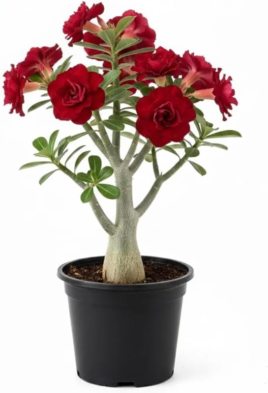 Desert Rose Live Plant, Adenium Desert Rose 4-8'' Tall, Hardy Flowering Succulent for Indoor Outdoor Gardens (Red Flowers) - Image 1