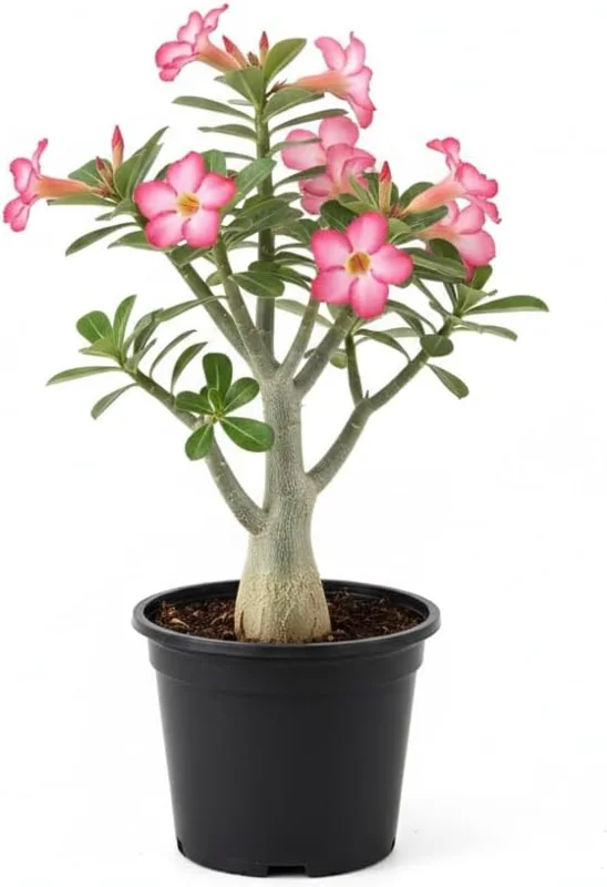 Features: Stunning, vibrant flowers: Desert Rose is known for its striking, showy blooms in vibrant colors like pink, red, yellow and white