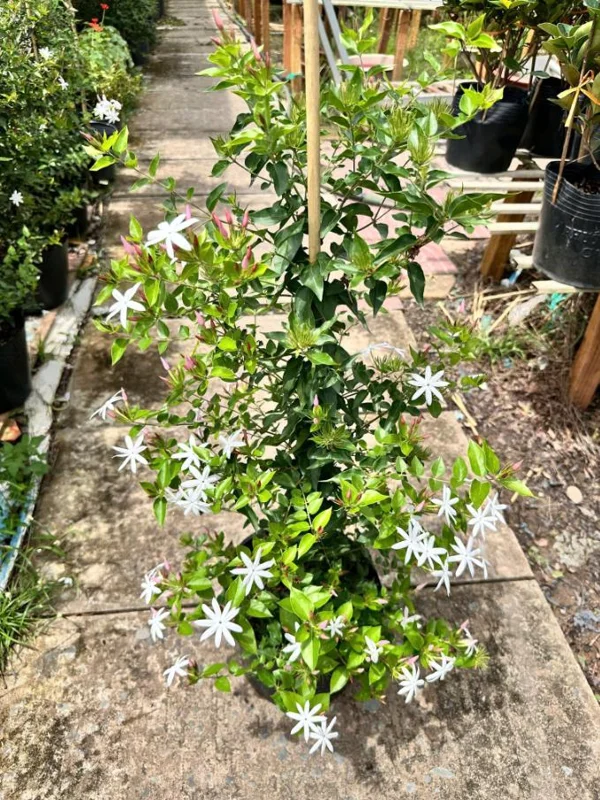 - Evergreen Foliage: In warmer climates, the Jasminum multiflorum maintains its lush green foliage year-round, providing continuous interest and structure to your garden even when not in bloom.