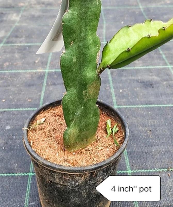 - Q: How big does this plant get? A: This dragon fruit live plant is currently in a 4-inch pot and is typically 6-12 inches tall. With proper support, dragon fruit can grow into a large climbing vine, reaching lengths of 10-20 feet.
