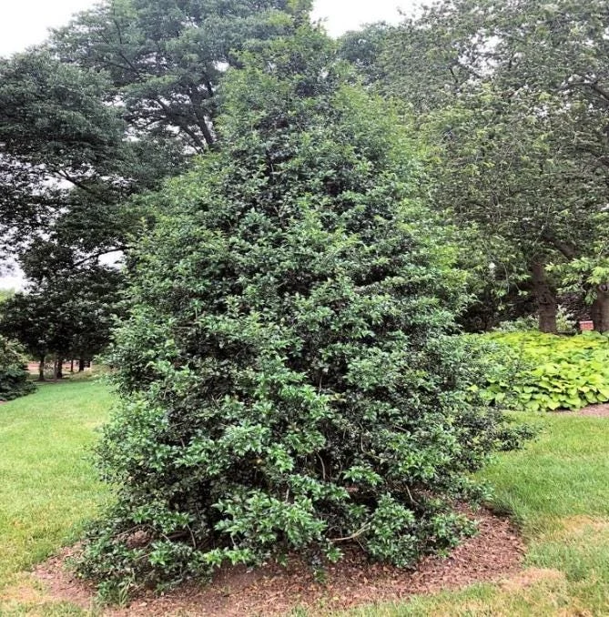 • Architectural Interest: With its naturally upright and somewhat pyramidal growth habit, this evergreen holly shrub adds strong vertical elements and structural definition to your landscape. It can be used to create formal hedges, privacy screens, or as a stately specimen plant.