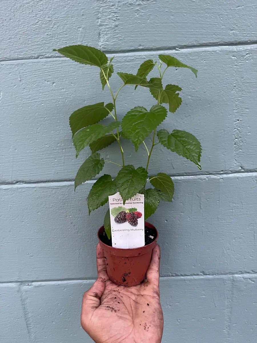 - Q: How big does this plant get? A: The dwarf everbearing mulberry plant typically grows to a mature height of 6-12 feet with a canopy spread of 4-8 feet, making it a compact and manageable fruit tree for most gardens.