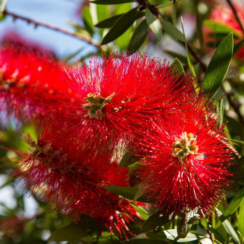 - Vibrant Red Blooms: Enjoy bright red, brush-like flowers that bloom in spring and summer, providing year-round beauty in mild climates.