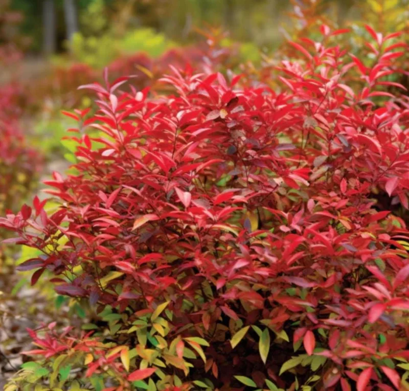 - Vibrant Seasonal Foliage: Enjoy glossy green leaves in spring and summer, which transition to brilliant yellow, orange, and fiery red in fall and winter, providing continuous visual interest. This dramatic color change makes the Nandina Firepower shrub a garden standout.