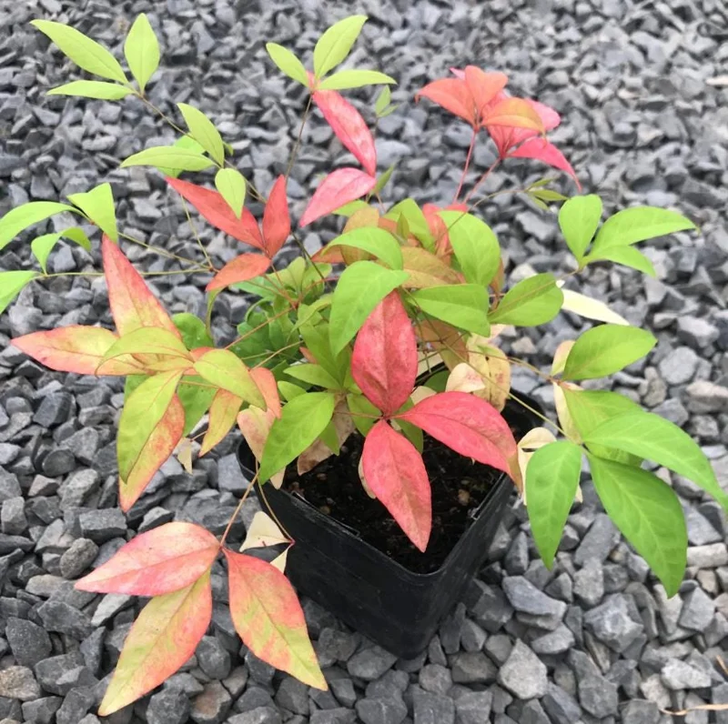 The plant’s foliage undergoes a remarkable transformation, starting green and developing into vivid yellow, orange, and red hues as temperatures cool. Red berries will appear in winter, adding to its year-round appeal. This plant ships as a young, actively growing specimen, ready for transplanting into your garden or a larger container upon arrival. With proper care, your compact Nandina plant will quickly establish and begin to showcase its stunning seasonal colors.