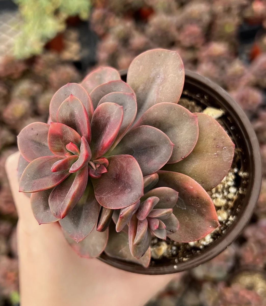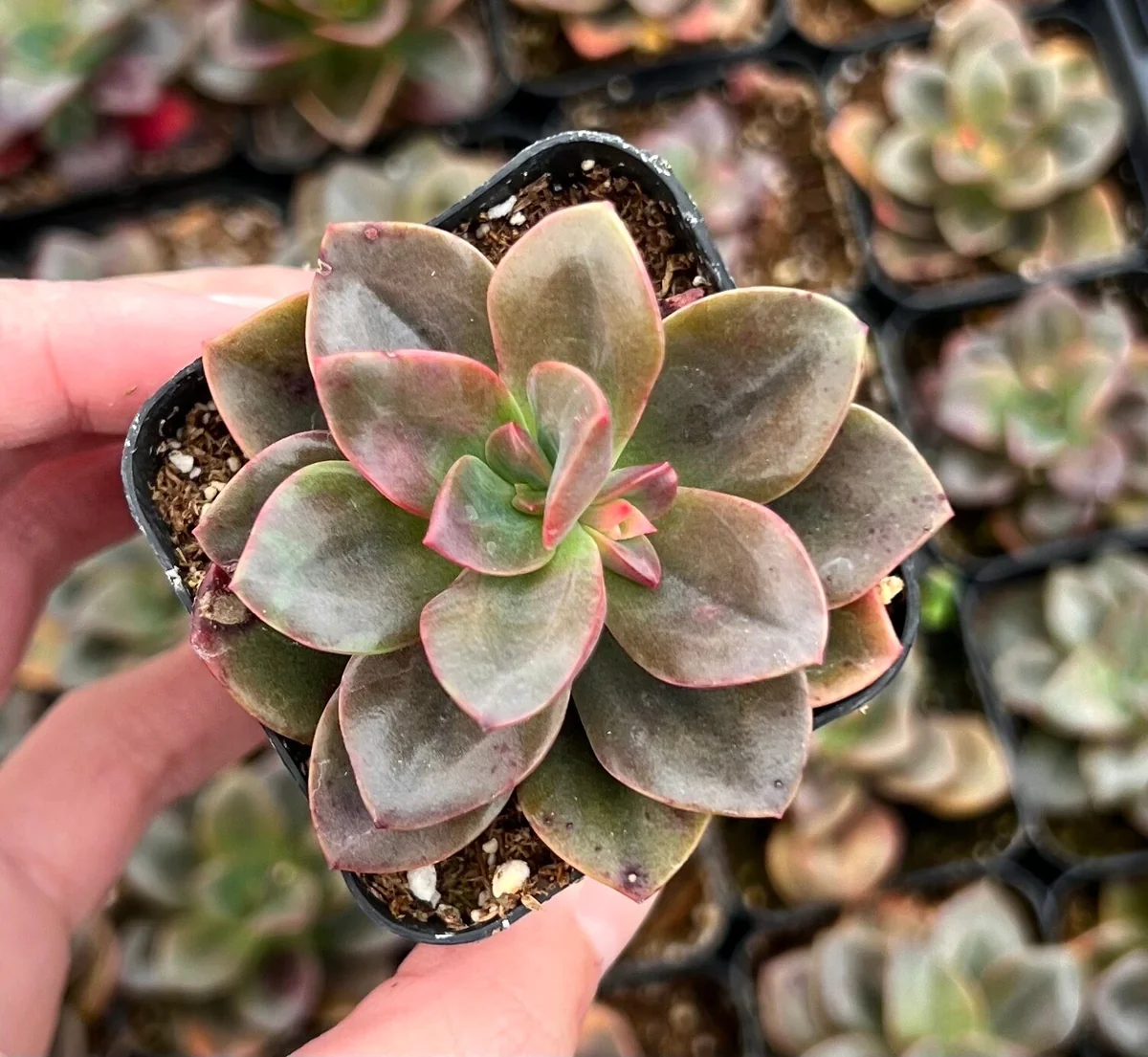 - Q: How big will my Echeveria Chroma get? A: Your echeveria chroma live succulent typically arrives in a 2-inch pot with a rosette diameter of about 1.5-2 inches. With proper care, it can grow to a mature size of 4-6 inches in diameter, maintaining its beautiful, compact rosette shape.