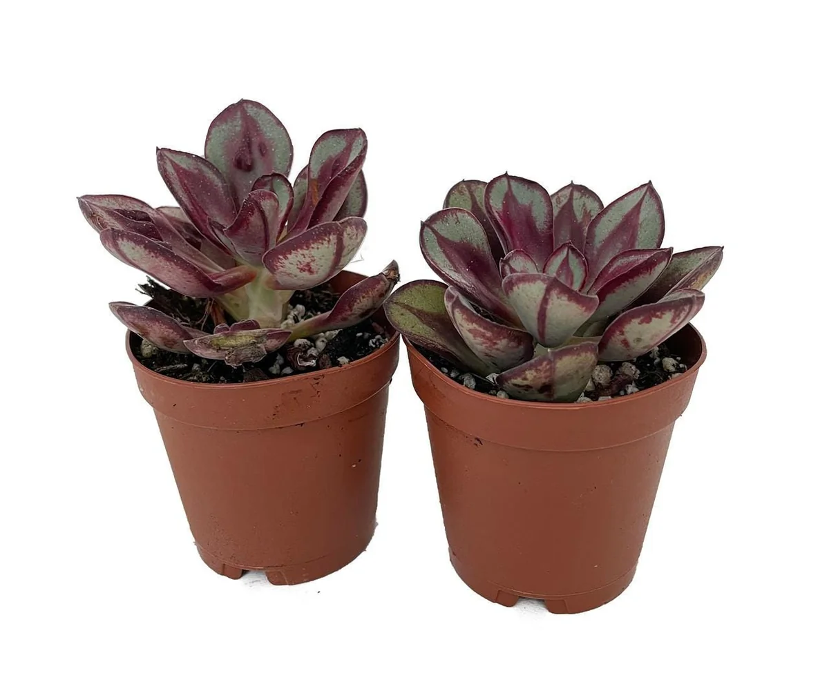 Each order includes two individual Echeveria Desert Rose succulent plants, each meticulously grown and shipped in its own 2-inch nursery pot. These compact plants are ideal for immediate display or for transplanting into your preferred decorative containers. At maturity, these succulents typically form rosettes that can range from 3 to 6 inches in diameter, though some varieties may grow larger. The growth rate is moderate, allowing you to enjoy their development over time without rapid overgrowth. They are shipped as fully rooted, healthy live plants, ensuring they are ready to thrive in their new environment. The 2-inch pot size makes them perfect for creating miniature succulent gardens, terrariums, or as charming accents on windowsills, shelves, and desks. Expect these easy care succulents to maintain their vibrant colors and tight rosette form with adequate light. They are sent with minimal soil to prevent shifting during transit but are robust enough to recover quickly upon arrival.