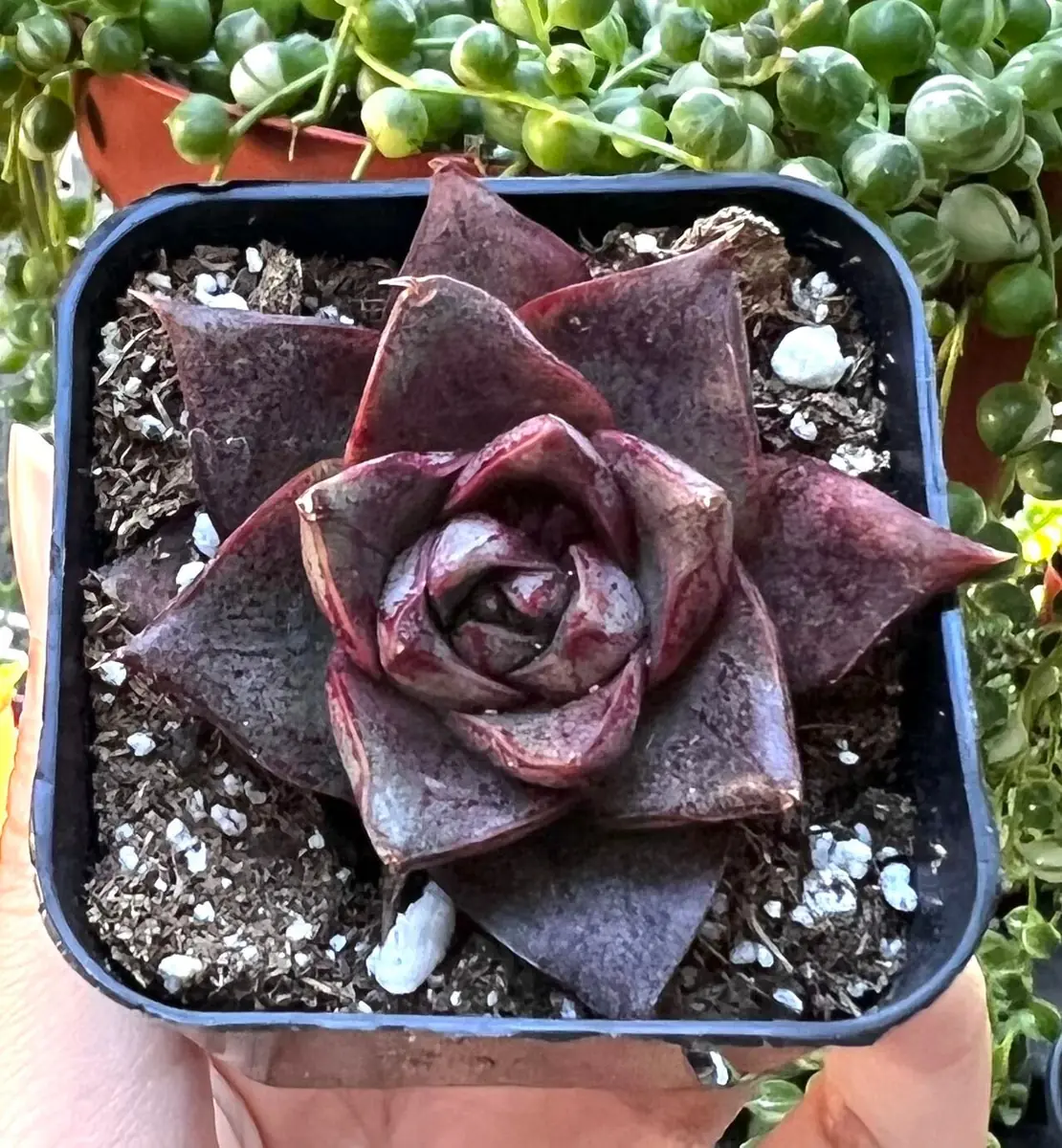 - Q: How big does this plant get? A: The Echeveria Dionysos live plant is a compact succulent. It typically grows to about 4-6 inches in diameter when mature, making it ideal for small spaces and container gardening.