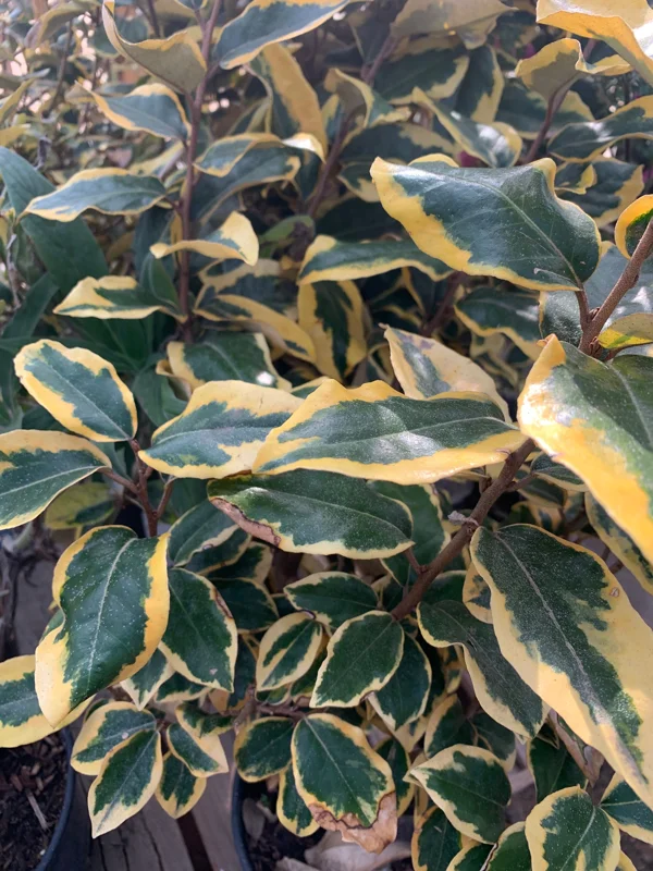 Originating from Asia, Elaeagnus pungens ‘Gilt Edge’ is known for its tough, leathery leaves and dense growth habit. It’s an excellent choice for adding structure and year-round interest to your outdoor spaces. Its ability to tolerate a range of conditions makes it a reliable and rewarding plant for various garden styles and experience levels.